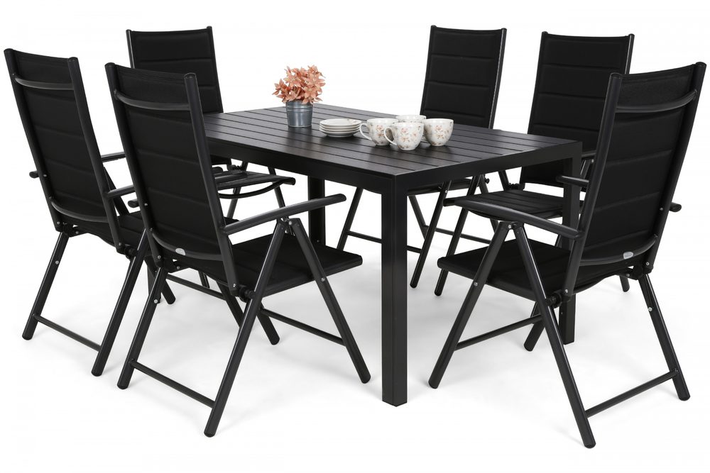 Zahradní set Ibiza se 6 židlemi a stolem 150 cm, černý