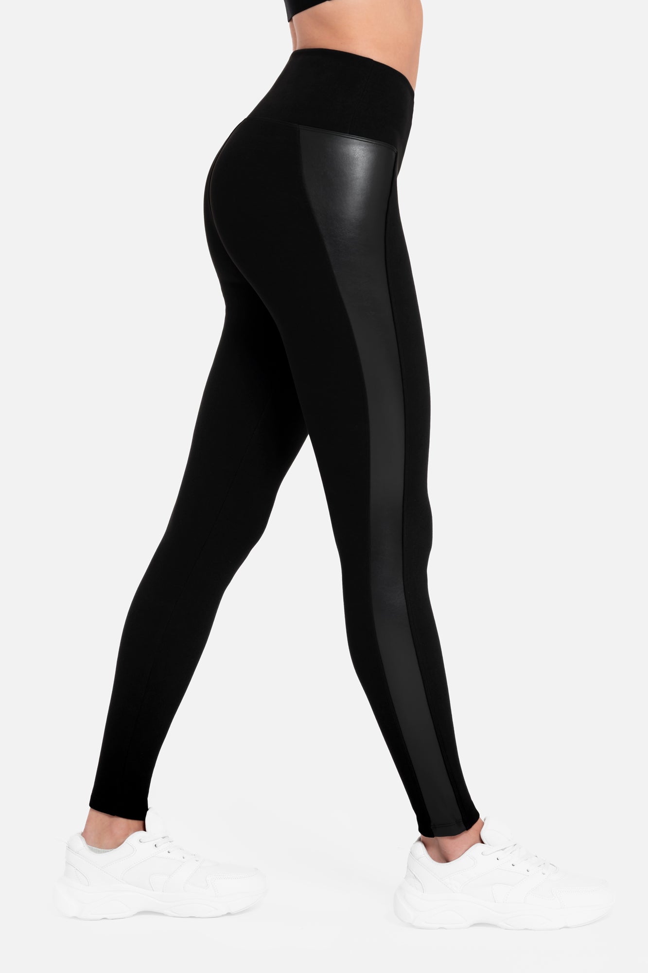 Pohodlné a hřejivé dlouhé legíny s detaily ve vzhledu kůže