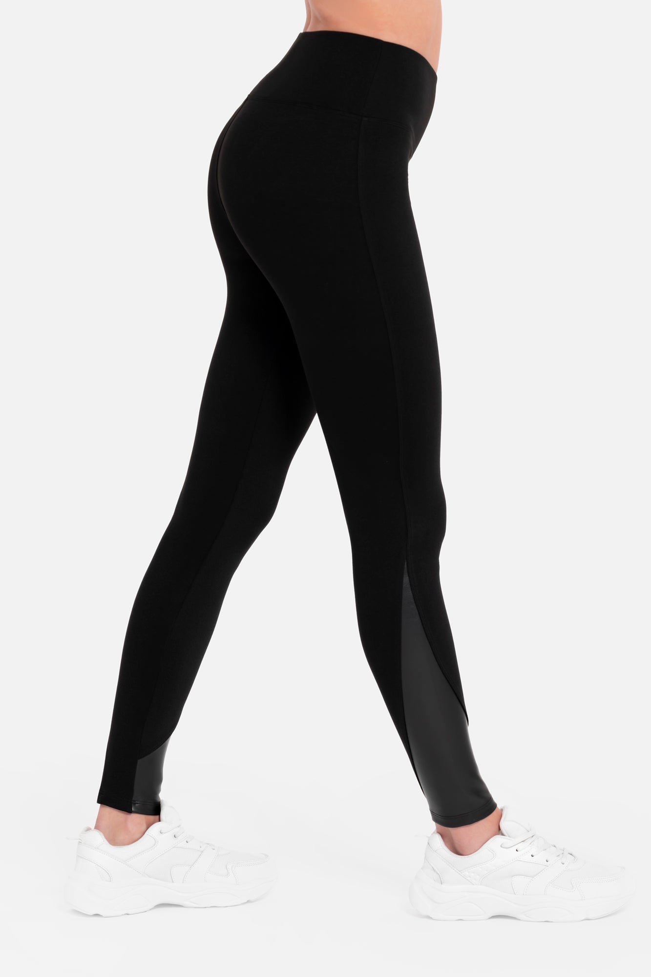 Pohodlné a hřejivé dlouhé legíny s detaily ve vzhledu kůže