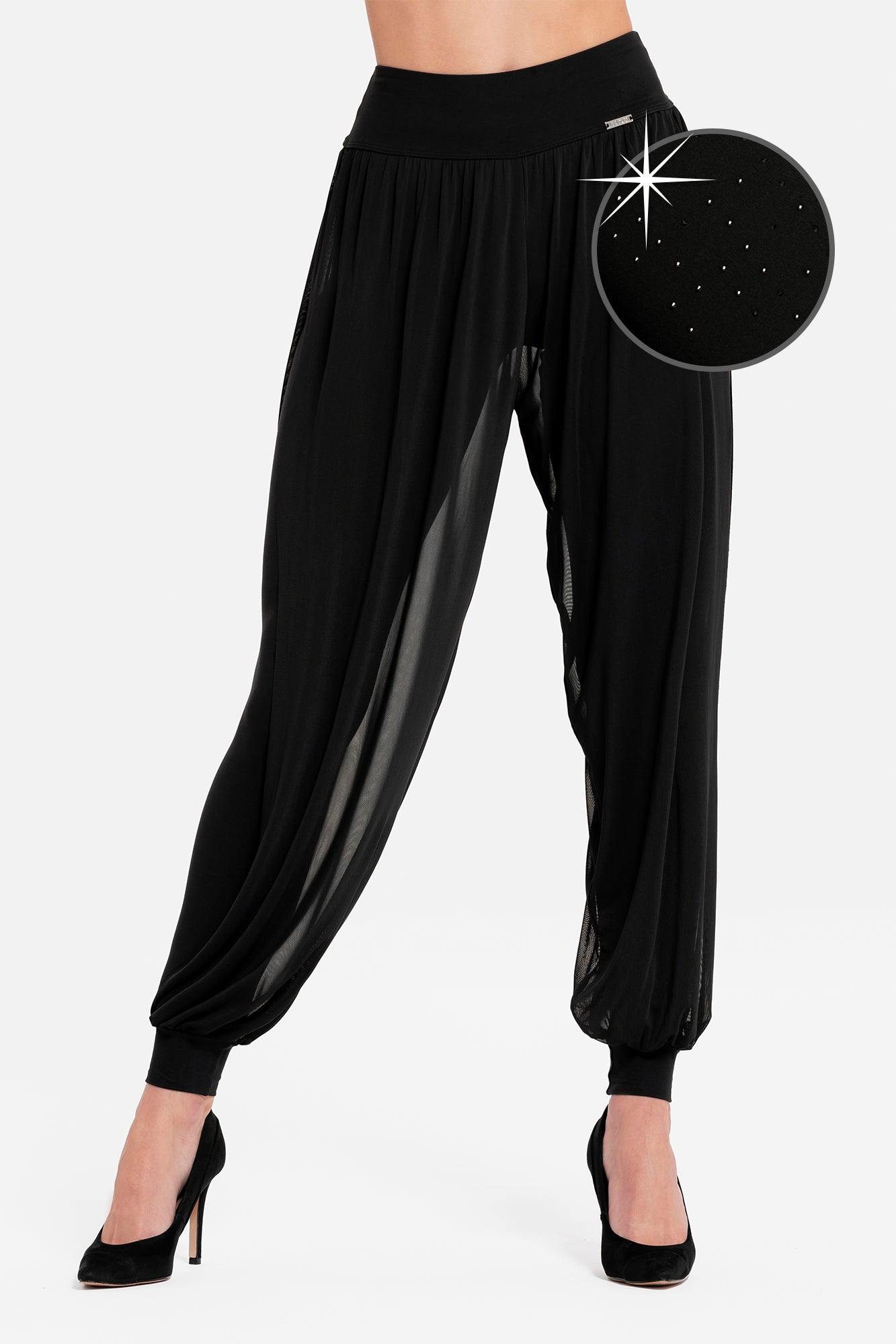 Elegantní legíny s průhledným závojem a vzhlede, harémových kalhot