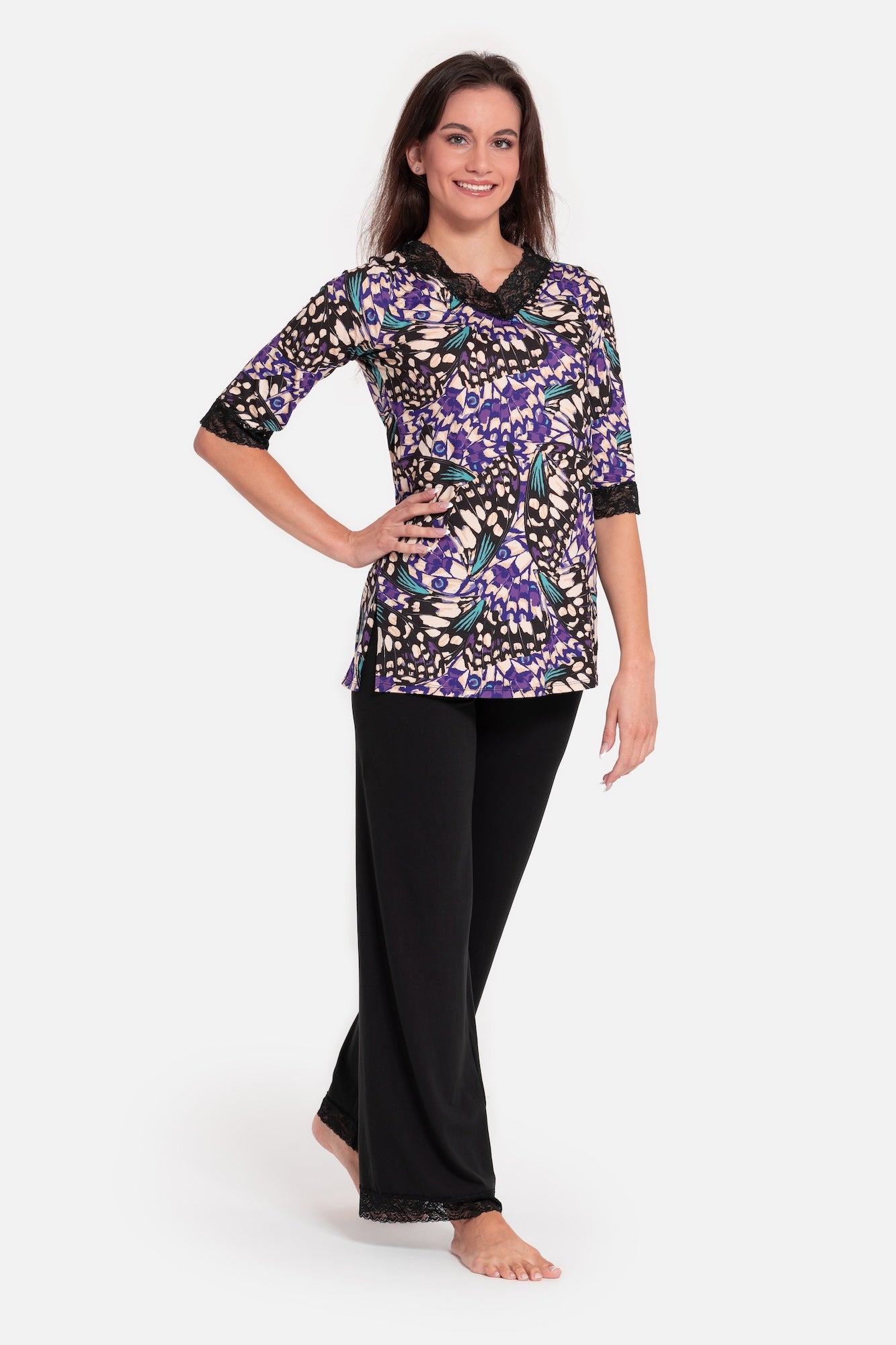 Pohodlné a elegantní dlouhé dámské pyžamo s krajkou