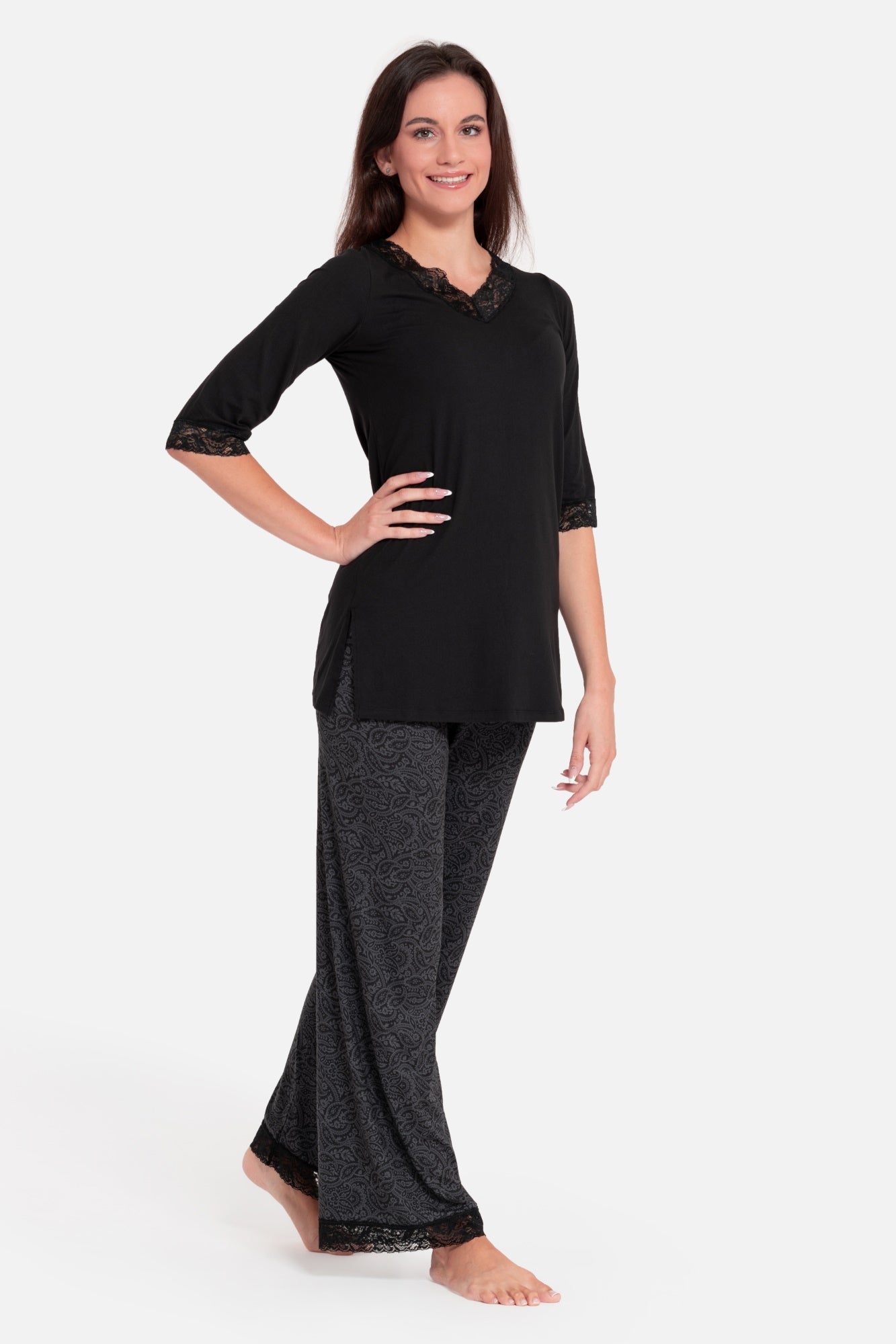 Pohodlné a elegantní dlouhé dámské pyžamo s krajkou