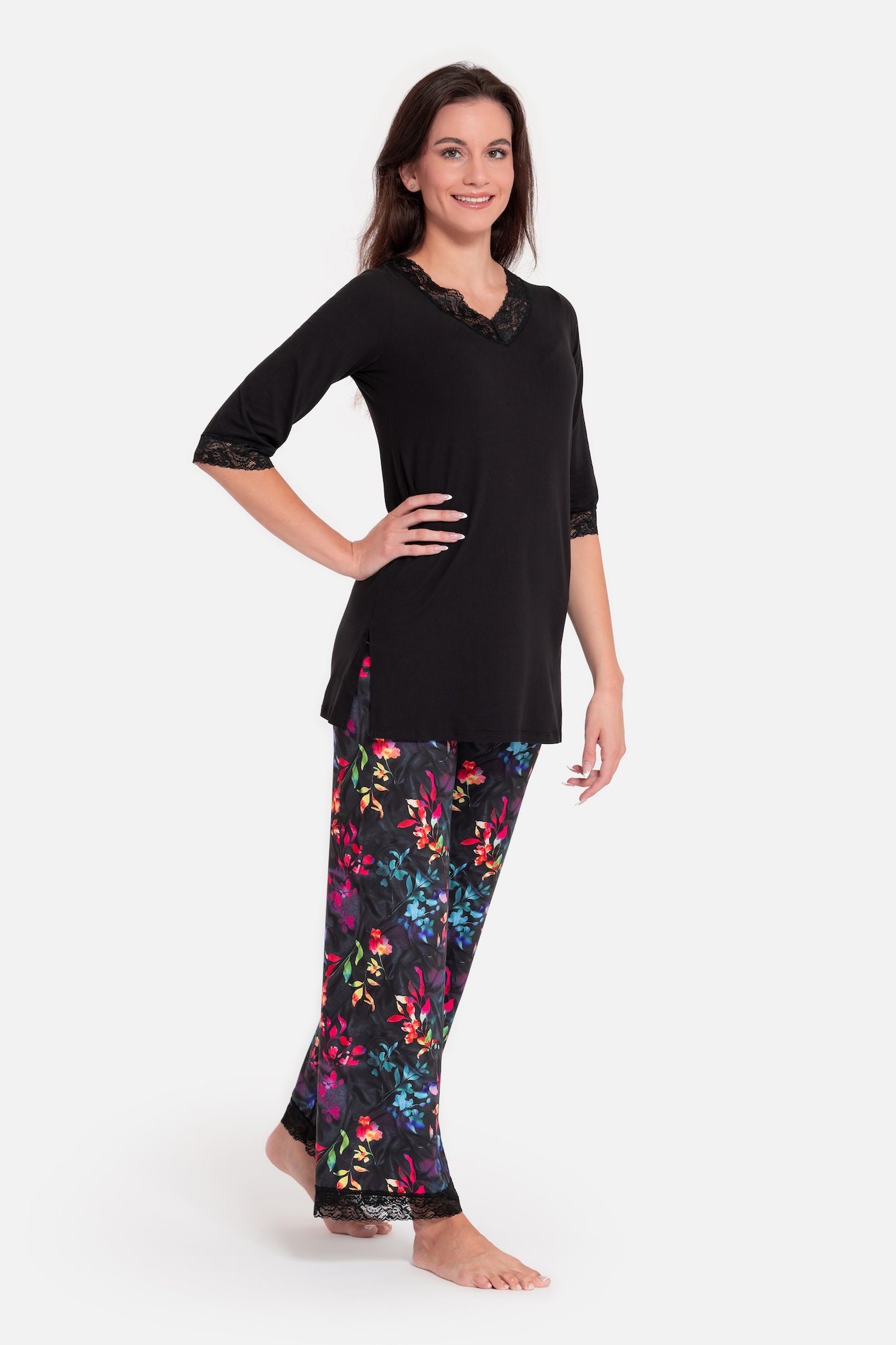 Pohodlné a elegantní dlouhé dámské pyžamo s krajkou