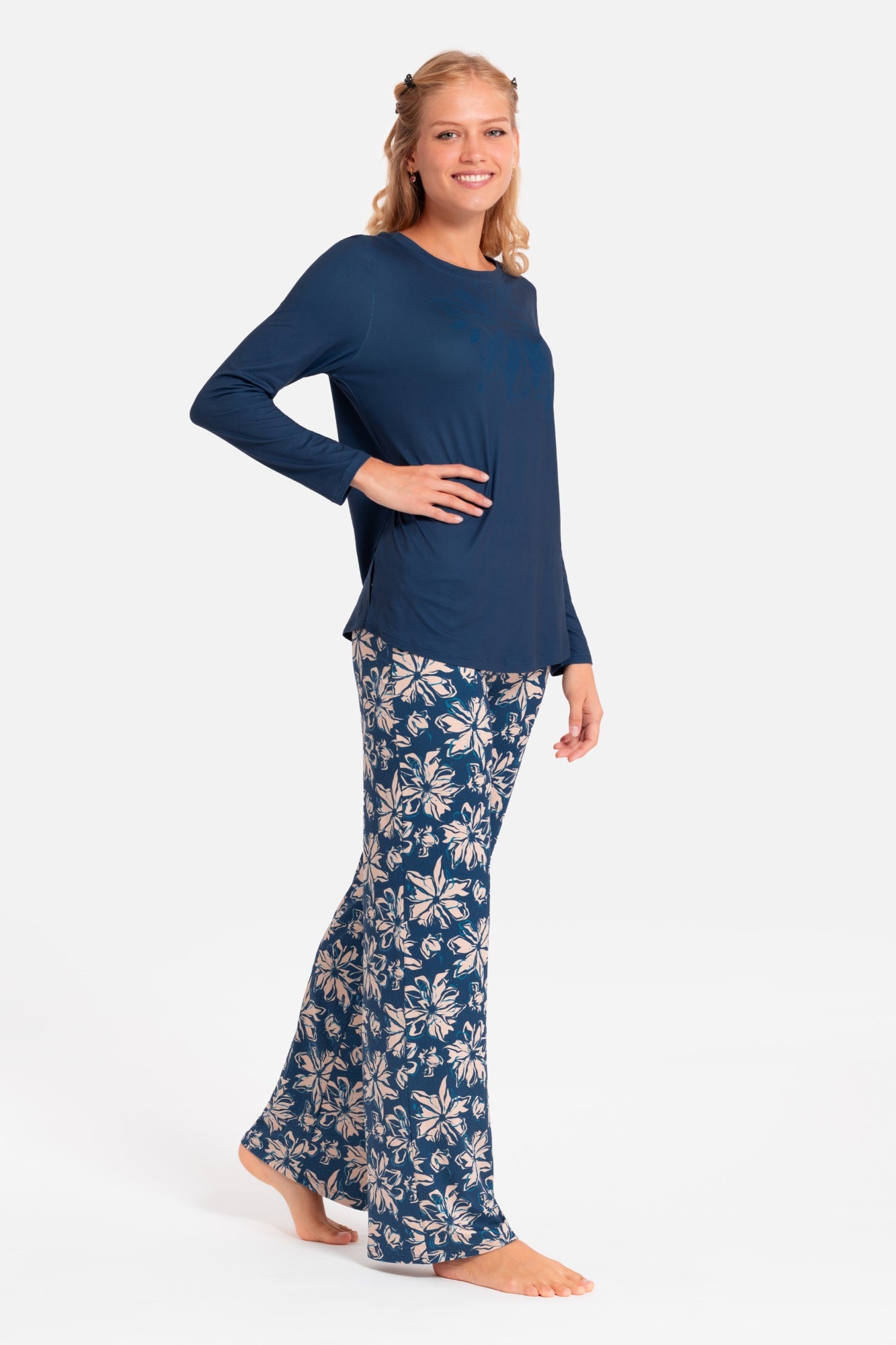 Měkká a pohodlná dlouhá dámská pyžama s rovnými nohavicemi