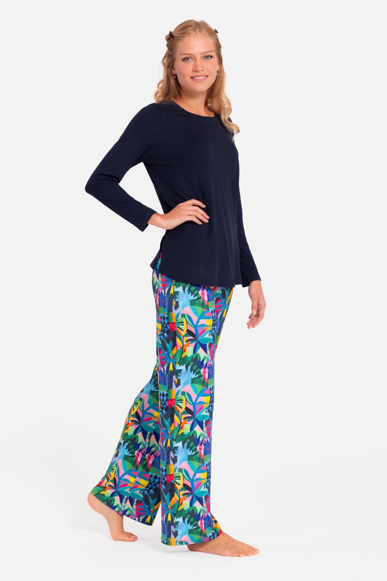 Měkká a pohodlná dlouhá dámská pyžama s rovnými nohavicemi