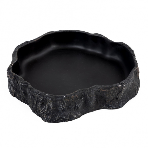 Miska na vodu či krmivo pro plazy, obojživelníky a další druhy zvířat, v černém designu.